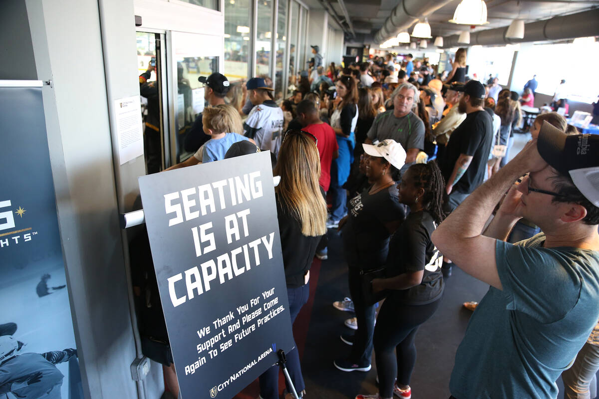 Fans watch the Vegas Golden Knights practice from a hallway after seating was at maximum capacity at City National Arena in Las Vegas, Wednesday, June 6, 2018. Erik Verduzco Las Vegas Review-Journal @Erik_Verduzco