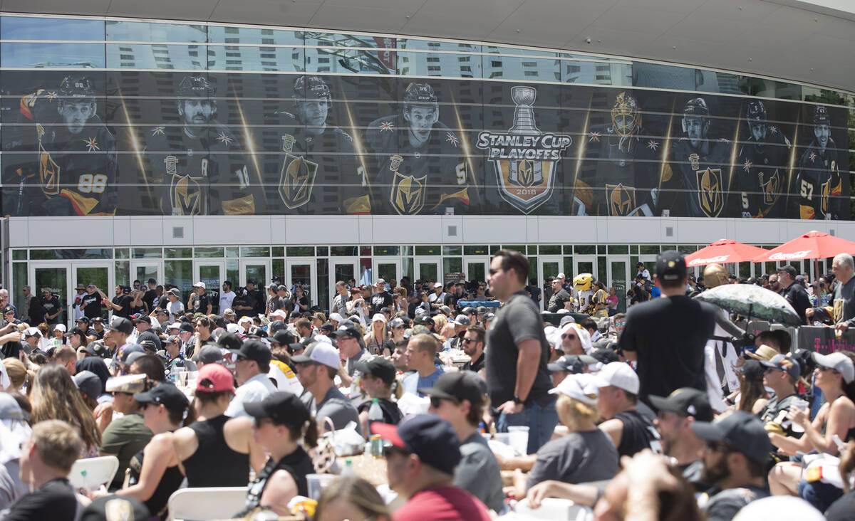 Golden Knights fans during a watch party for Game 5 of the Western Conference Finals between the Golden Knights and the Winnipeg Jets at Toshiba Plaza in Las Vegas on Sunday, May 20, 2018. Richard Brian Las Vegas Review-Journal @vegasphotograph