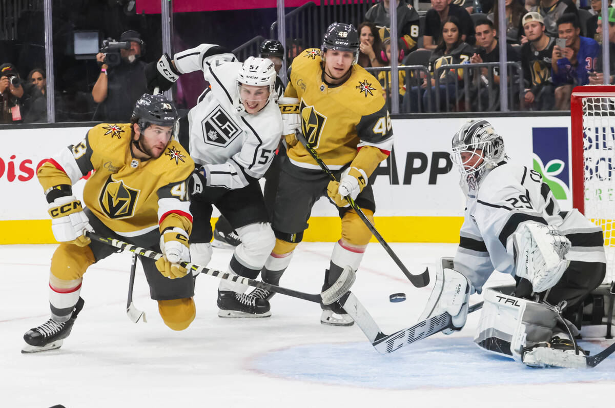 Cotter seems to have taken that message to heart. The left wing has played in all three of the Knights’ preseason games and has two goals, an assist and a near miss in the third period Monday that could have won a game against Los Angeles. He’s doing everything in his power to break camp with the big club.
