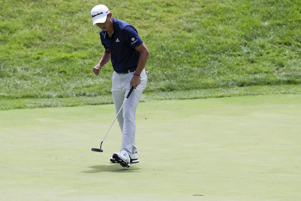 He was in thick rough right of the fairway on the par-5 15th, unsure he could get over the slope to the next section of fairway. It came out heavy, just through the fairway into light rough 190 yards away. By then, Thomas was already on the green in two. Morikawa went through a bunker to the steep slope by the green, and did well to get up-and-down for par.