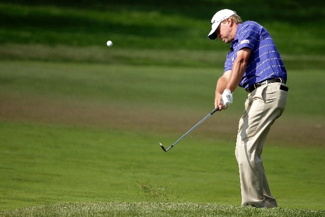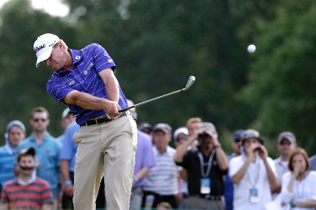 They were at even-par 210 along with Stricker, who made a 10-foot par putt on the 18th hole to complete the steadiest round of the day. His only mistake in a round that lasted 5 1/2 hours under sunshine was a tee shot into the water on the par-3 ninth for a double bogey. Stricker had a 70.