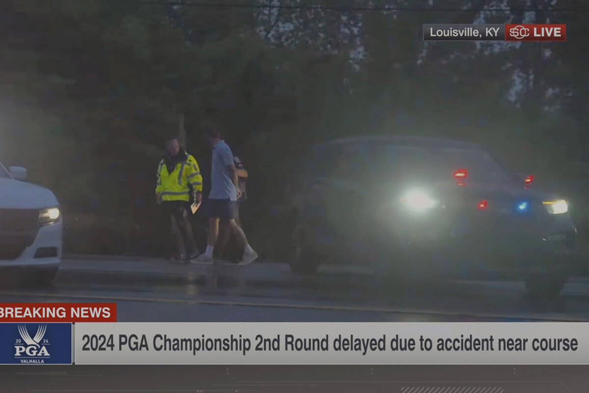 ESPN reporter Jeff Darlington witnessed the incident and said Scheffler, the No. 1 player in the world who was to start the second round at 8:48 a.m., drove past a police officer a little after 6 a.m. in his SUV with markings on the door indicating it was a PGA Championship vehicle.