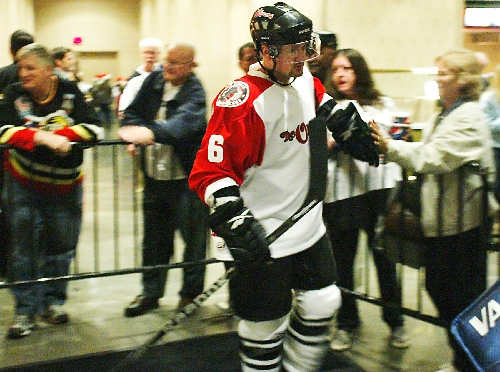 Inspired by his younger brother, who is serving overseas in the U.S. Navy, Wranglers defenseman Barry Goers got involved with the "Cell Phones for Soldiers" program.