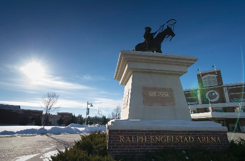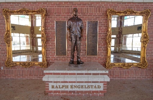 The arena welcomes those who step inside with a statue of Engelstad, and some of his favorite quotes are engraved on nearby walls.