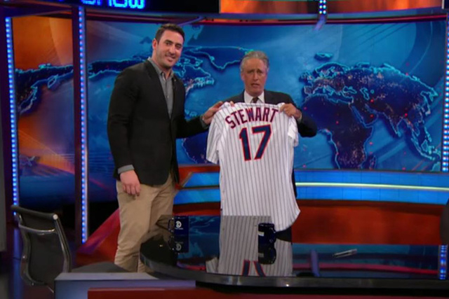 A big Mets fan, Jon Stewart interviewed New York ace Matt Harvey on “The Daily Show” during an entertaining segment Thursday night.