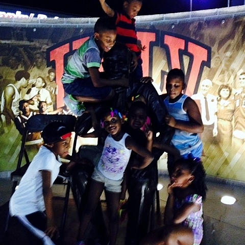 In this case, the kids turned Jerry Tarkanian’s statue on the walkway outside of the arena into a piece of playground equipment.