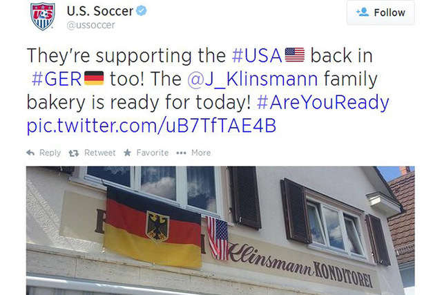 “They’re supporting the #USA back in #GER too! The @J_Klinsmann family baker is ready for today! #AreYouReady,” the tweet read.