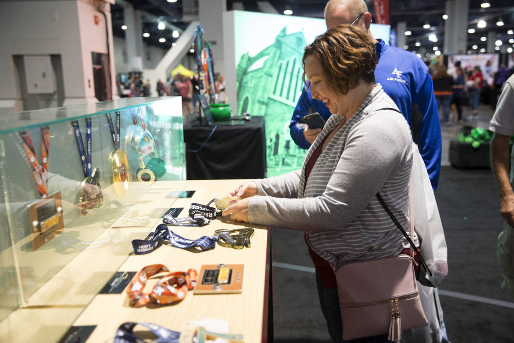Susan Barnes, who traveled from Maryland for the Las Vegas Rock ‘n’ Roll Marathon this weekend, once switched her registration from a race in Richmond, Virginia, to one in Baltimore because it had a more unique medal — one depicting a crab.