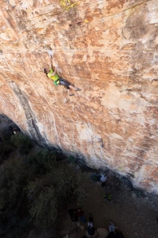 In his backyard of Red Rock, Allfrey has ticked many hard routes. He is one of four people to make a free ascent of Desert Solitaire, a 12 pitch 5.13b on the Rainbow Wall in Red Rock.