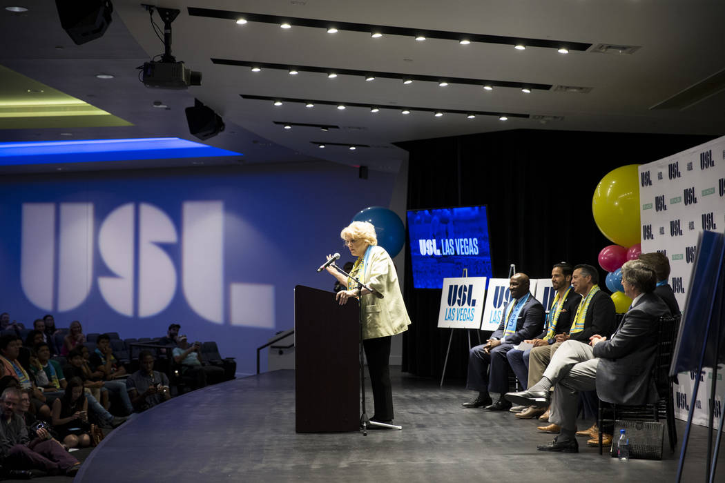 Mayor Carolyn Goodman during an United Soccer League event to celebrate the newest team from Las Vegas in the league at the Zappos campus in Las Vegas on Friday, Aug. 11, 2017. Erik Verduzco Las Vegas Review-Journal @Erik_Verduzco
