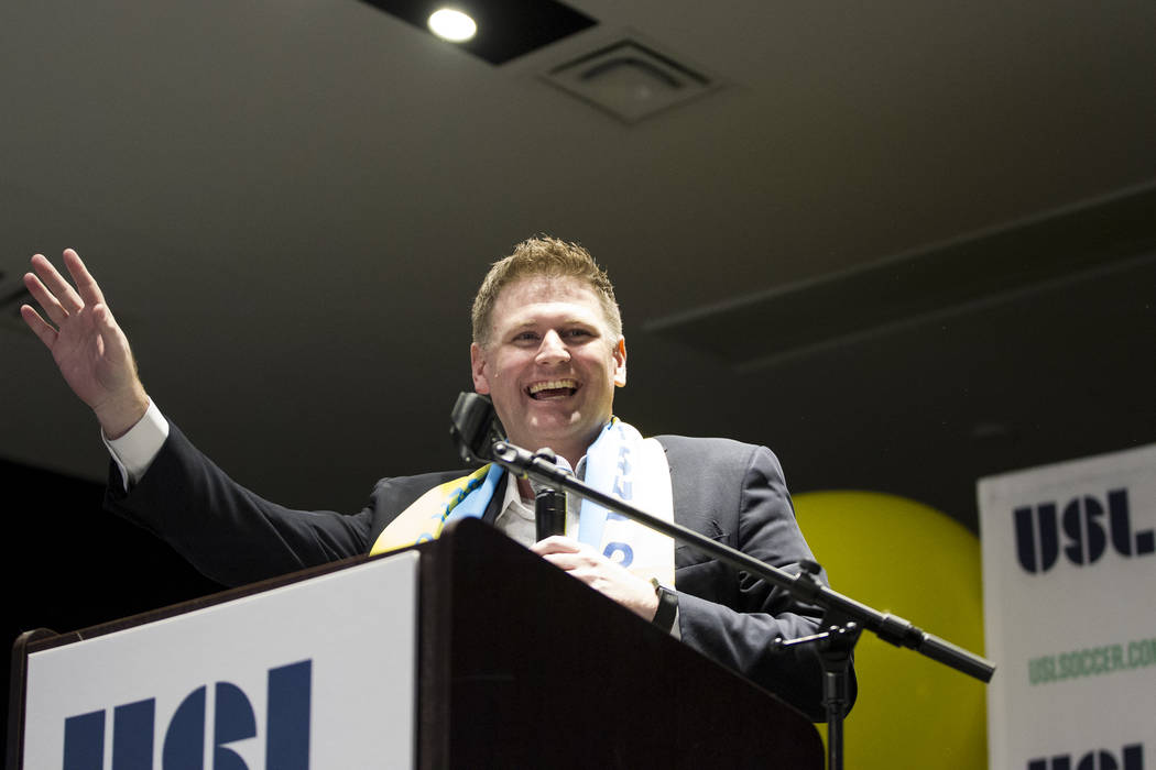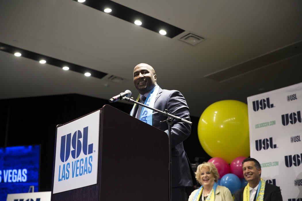Jake Edwards, president of the United Soccer League, during an USL event to celebrate the newest team from Las Vegas in the league at the Zappos campus in Las Vegas on Friday, Aug. 11, 2017. Erik Verduzco Las Vegas Review-Journal @Erik_Verduzco
