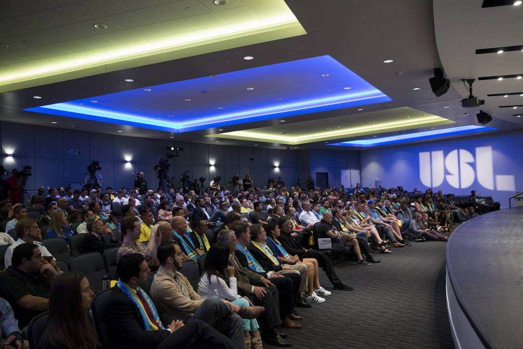 Attendees during an United Soccer League event to celebrate the newest team from Las Vegas in the league at the Zappos campus in Las Vegas on Friday, Aug. 11, 2017. Erik Verduzco Las Vegas Review-Journal @Erik_Verduzco