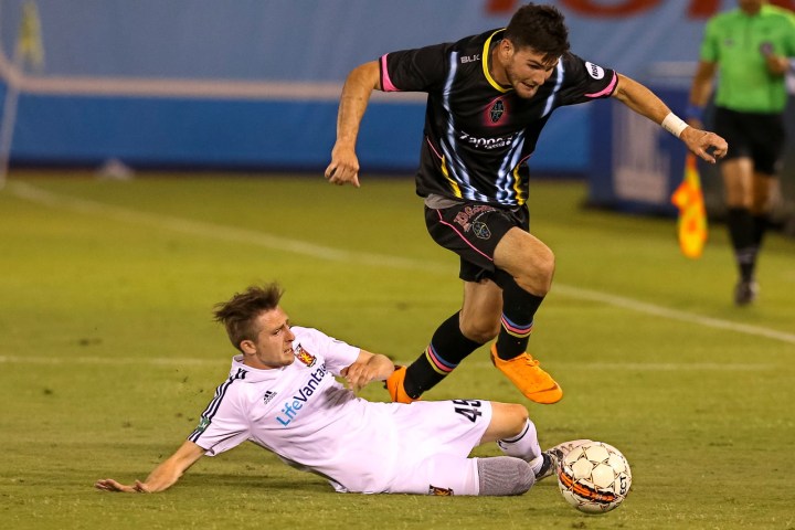 Lights FC forward Omar Salgado’s impressive free kick was the game-winning goal in the Lights’ 2-1 win at Portland Timbers 2 on Sunday.