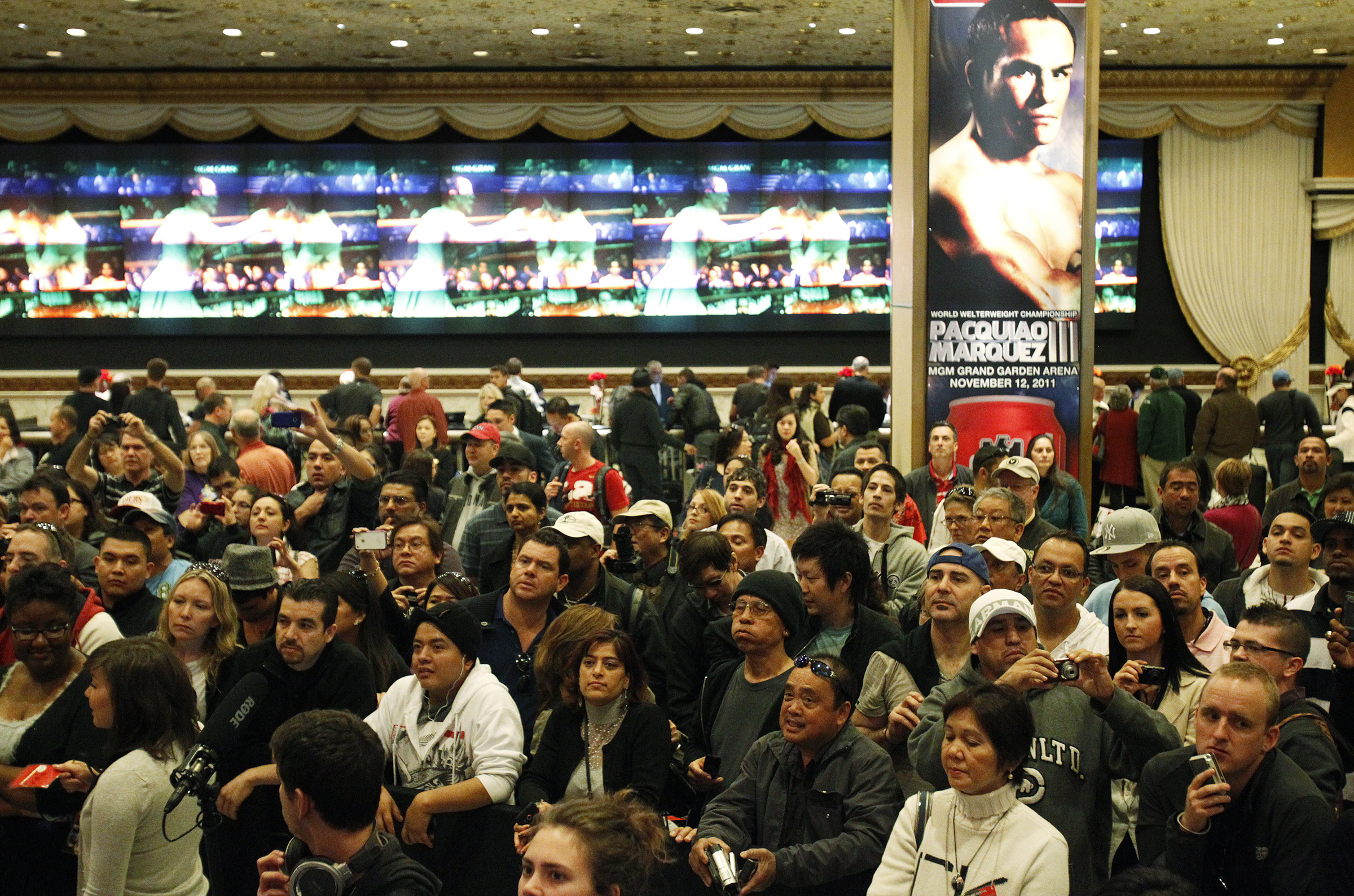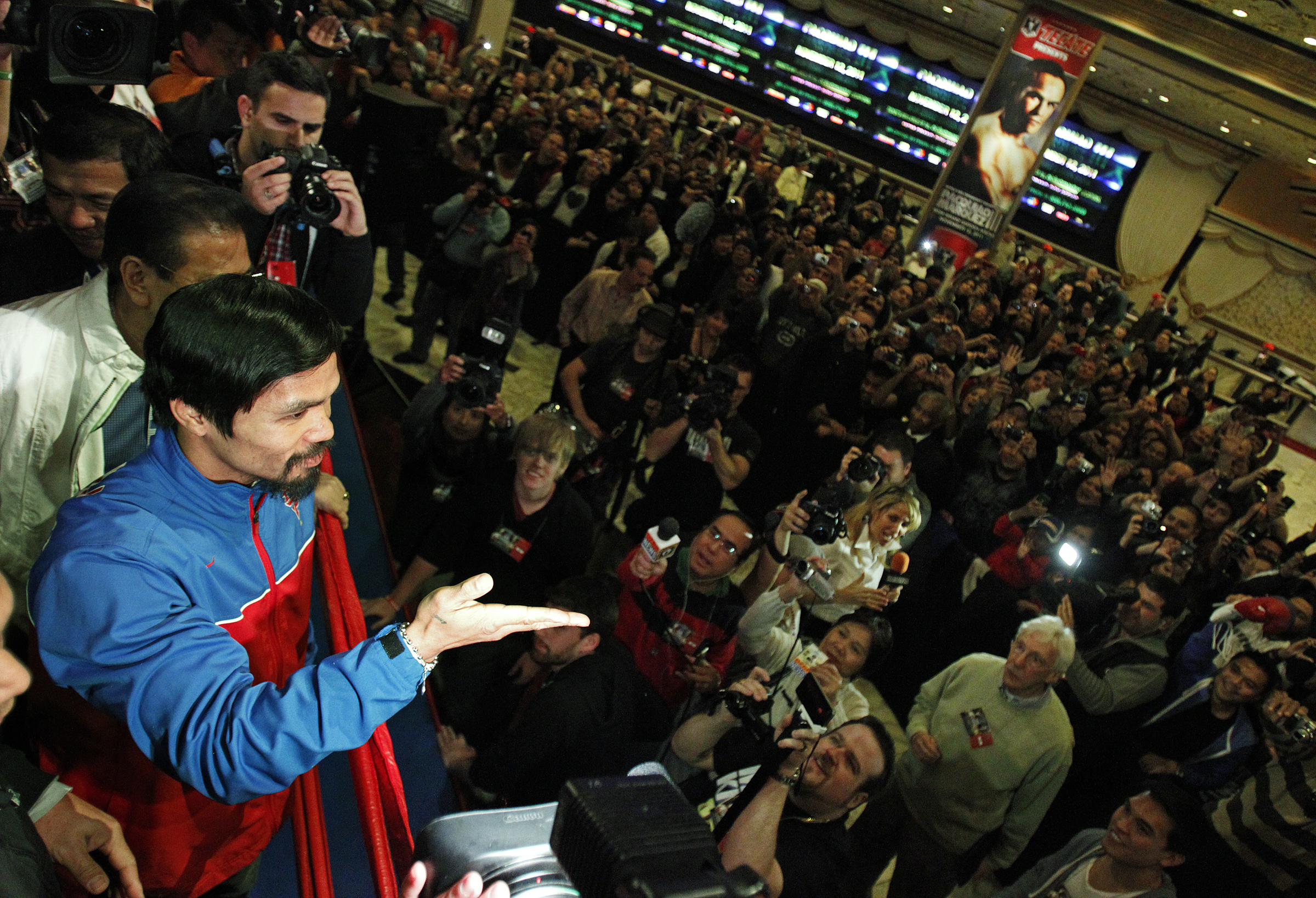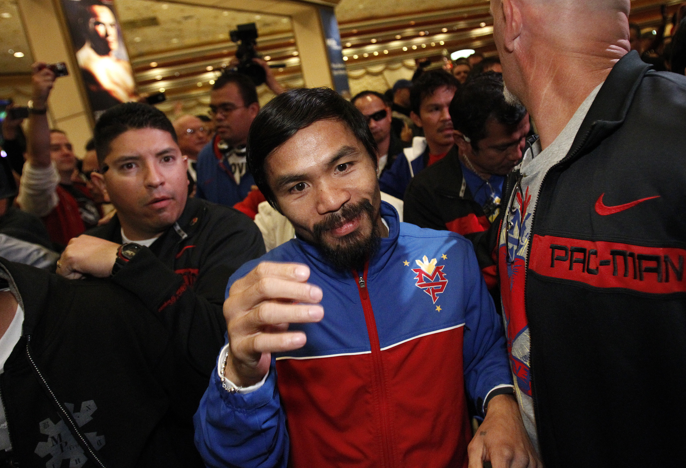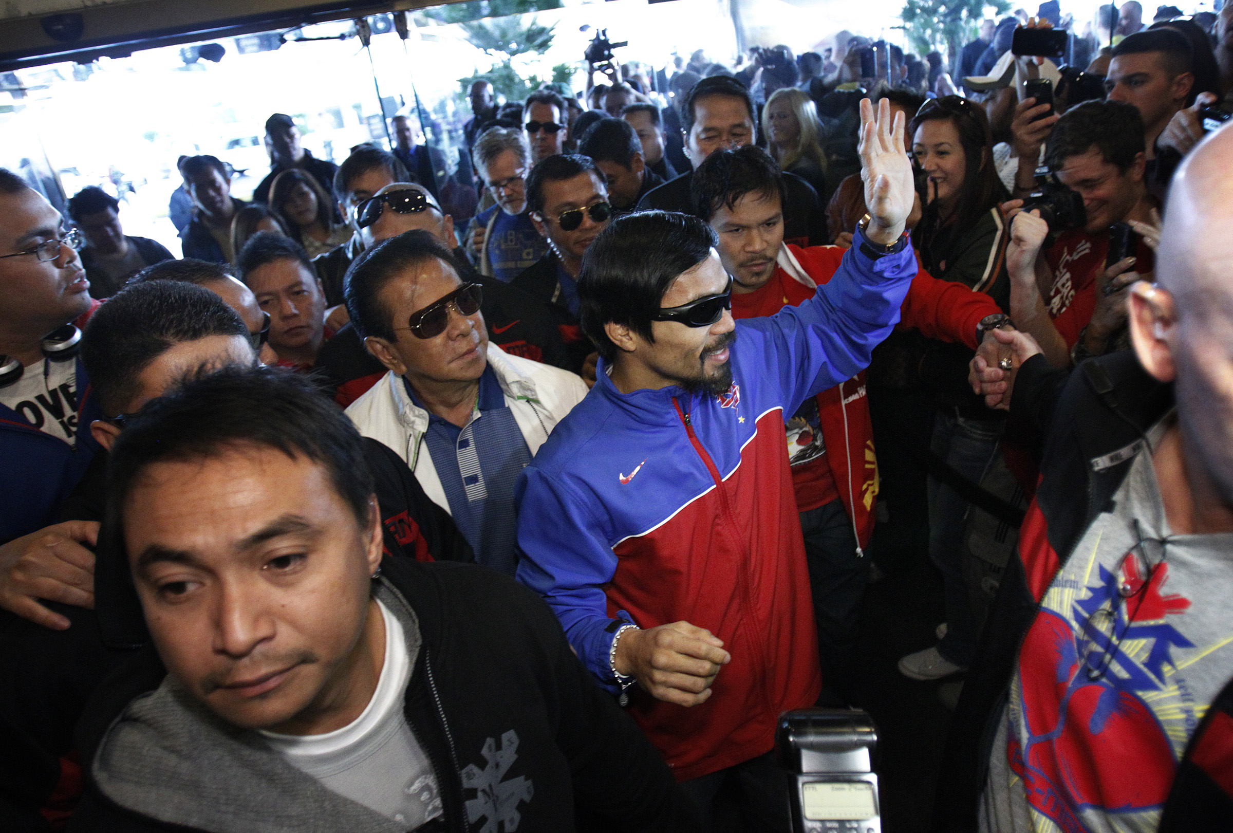 Manny Pacquiao arrives at the MGM Grand in Las Vegas Tuesday, Nov. 8, 2011. Pacquiao will fight Juan Manuel Marquez Saturday.