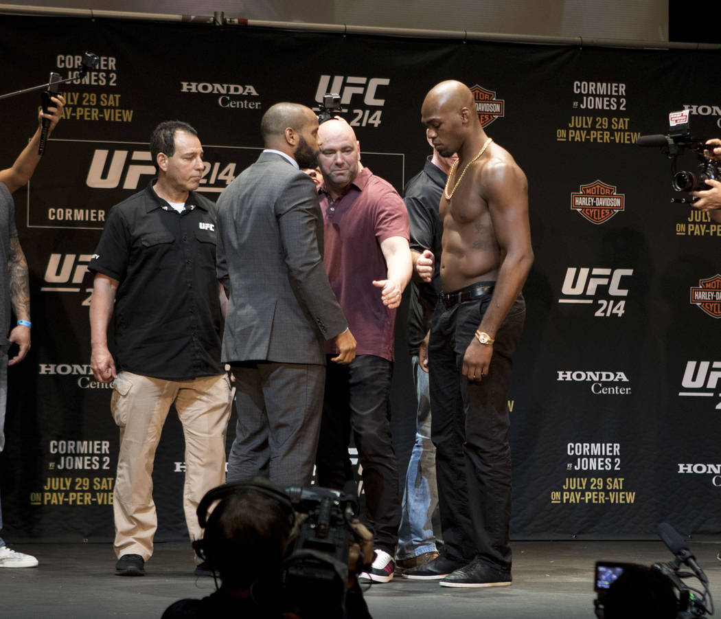 Jones and Cormier exchanged several cutting barbs, but there were no real fireworks at L.A. Live where the two promoted their championship rematch for UFC 214 on Saturday night in Anaheim.