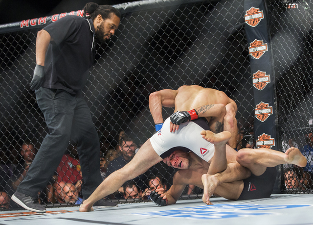 A heavyweight bout between Derrick Lewis and Las Vegan Roy Nelson was supposed to end in similarly spectacular fashion, but Nelson elected to doggedly pursue takedowns on the big slugger.