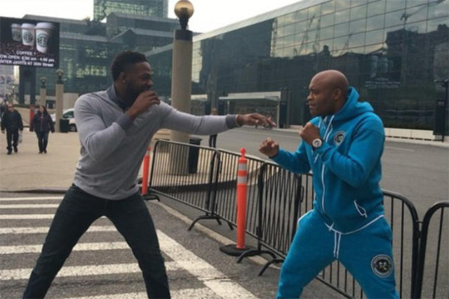 Jones and Silva met up on the streets of New York and went through a quick shadowboxing session.