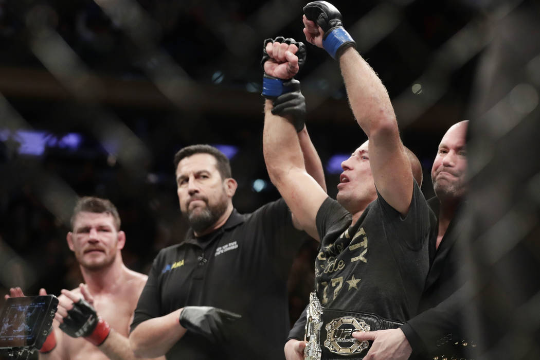Whittaker, an Australia native, has won eight straight fights. He captured the interim belt with a win over Yoel Romero in July as the St. Pierre and Bisping fight was on hold.