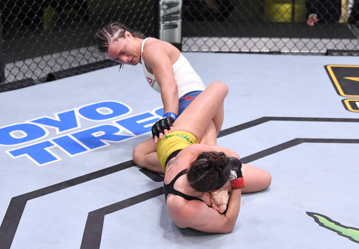 “I came back from the pregnancy and fought good with Amanda (Ribas), but she was better than me that day and I wasn’t able to really show how I was,” Dern said. “So, I think nothing better than to do a submission that no one has ever done to show that ‘Hey, I’m a jiujitsu girl and, yes, I’m here and ready to be in the UFC and, yes, I’m coming for the belt.’ ”