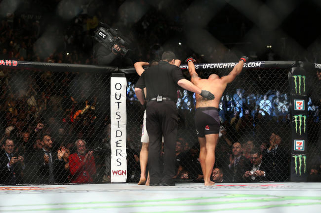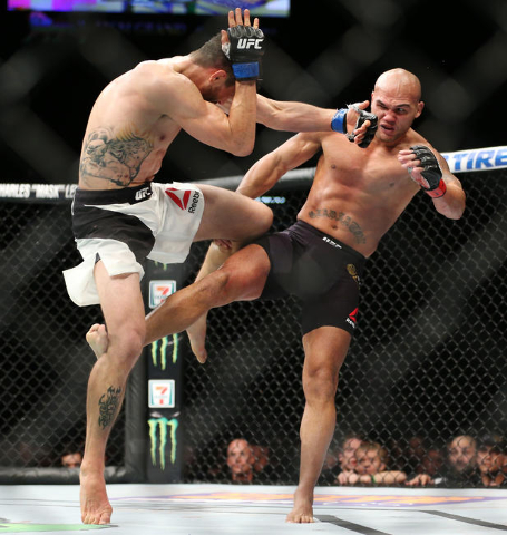 Lawler wins epic fifth round over Condit to retain title at UFC 195 — VIDEO