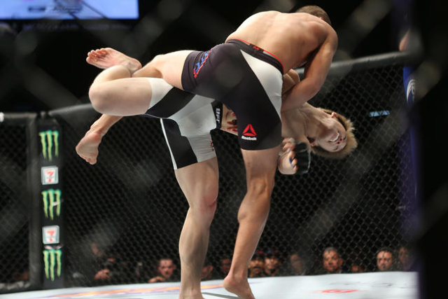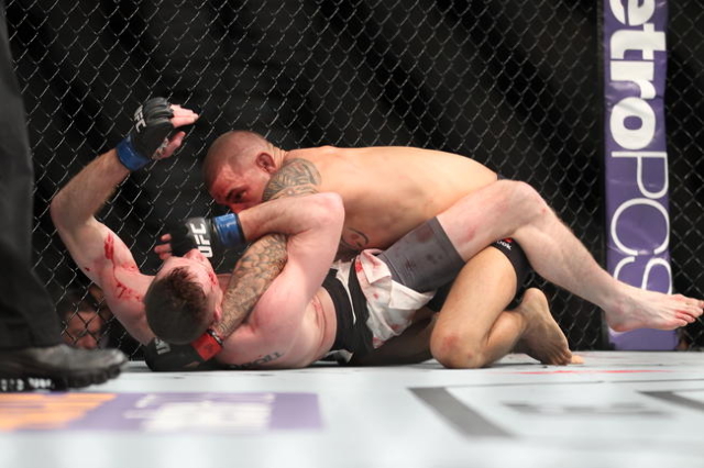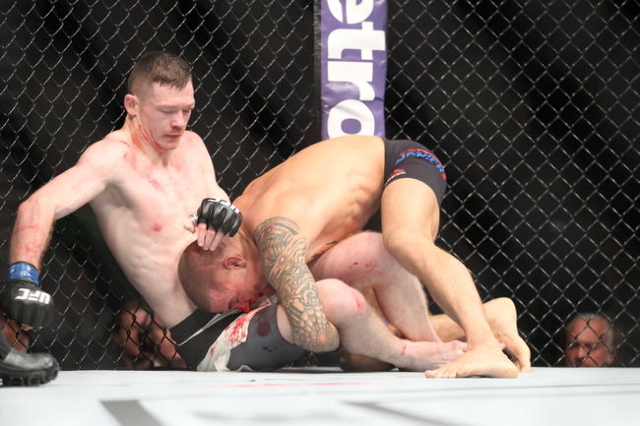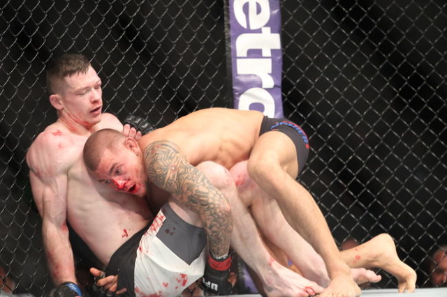 Poirier did his best work pushing Duffy against the cage on the mat and battering him with elbows and punches.