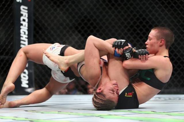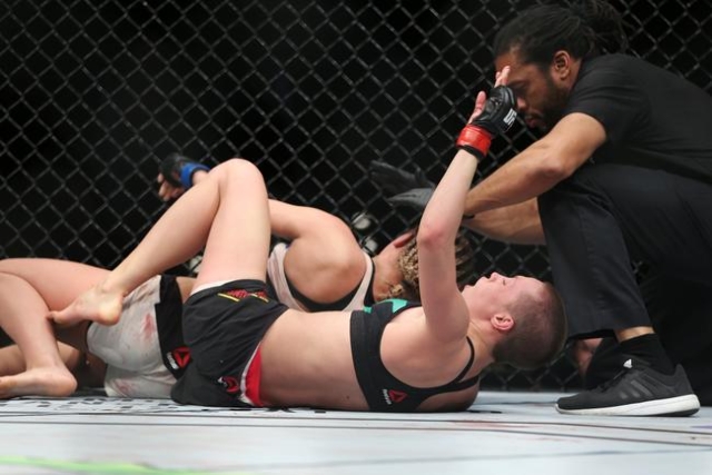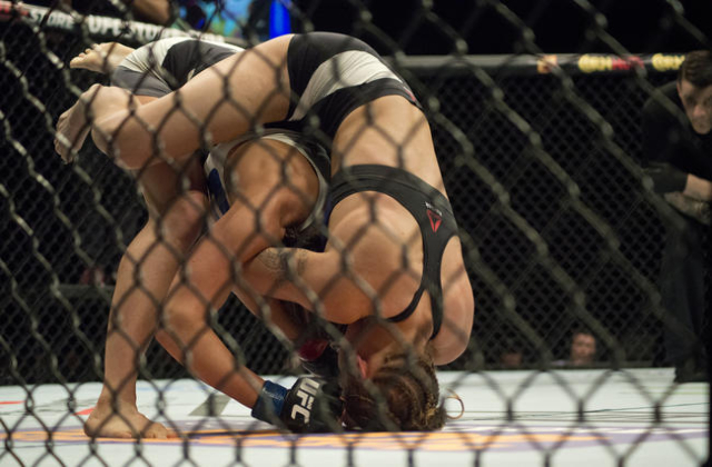 Namajunas was in control from the beginning, dominating to the point of winning all four rounds on all three scorecards and even getting three 10-8 rounds. She nearly finished several submission attempts before the final sequence.