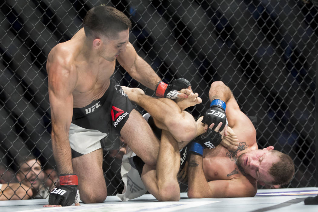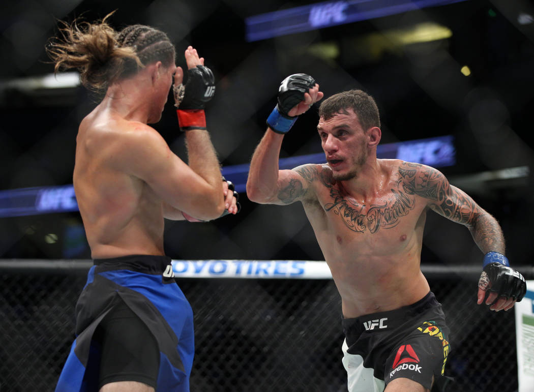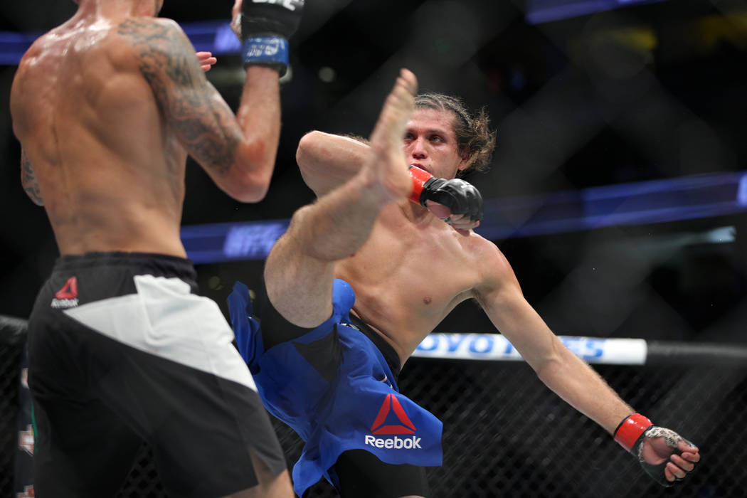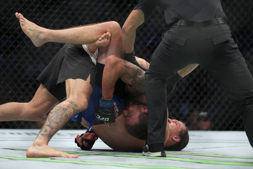Featherweight Brian Ortega remained undefeated by submitting Renato Moicano with a guillotine choke.