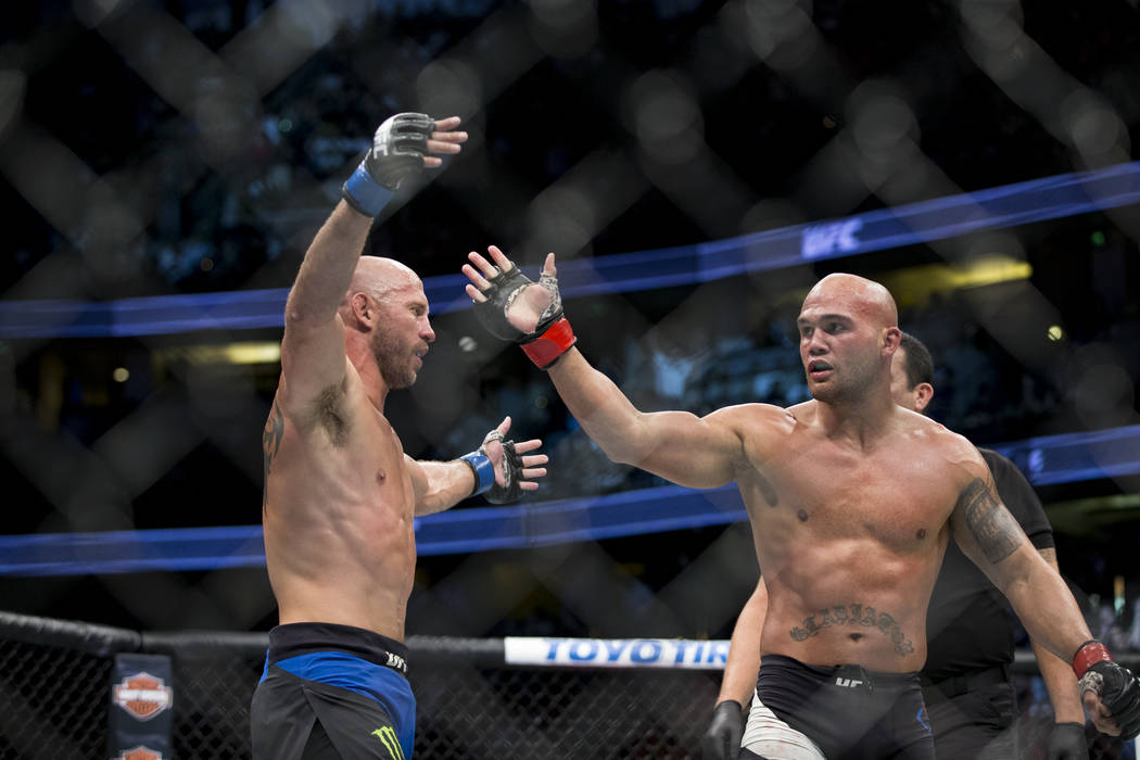 “Every time I threw a hook and punch he was in on my legs,” Woodley said. “It would be silly for me to take him down and try to submit him. I went out there and did what I needed to do. For me, the exciting part was that he had won seven fights in a row, and he’s been able to take down all of his opponents. He didn’t take me down one time. He didn’t even come close.”