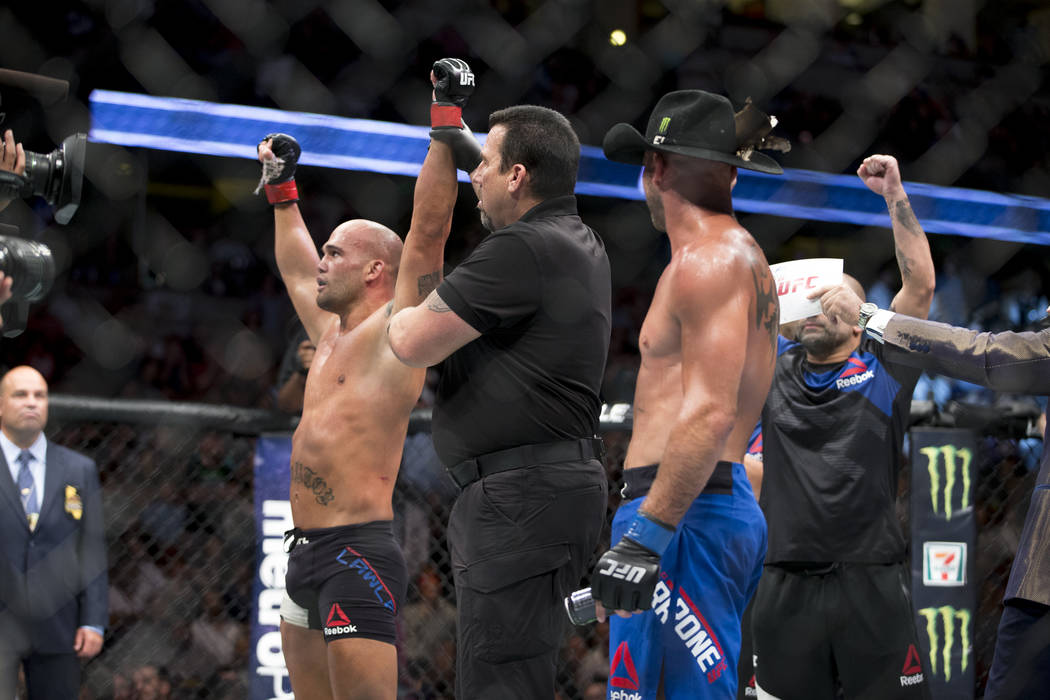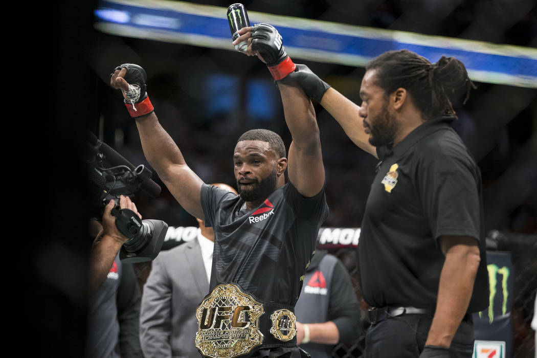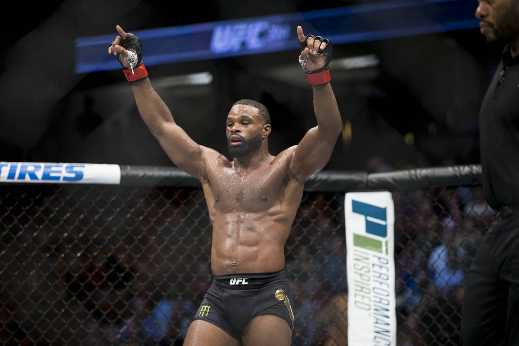 Tyron Woodley stands up to challenge from Maia at UFC 214