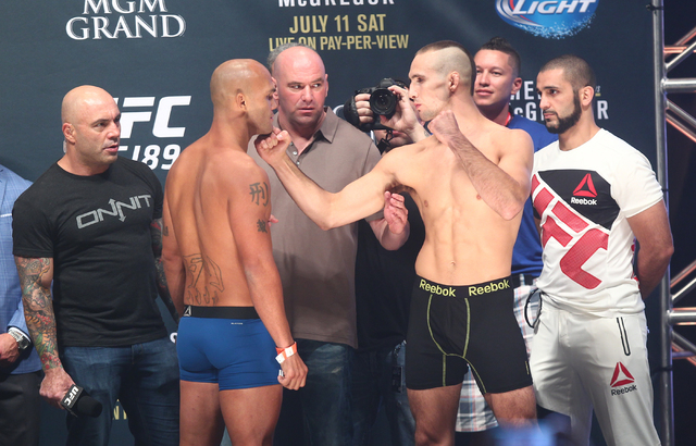 A breakdown of the fights on the main card of UFC 189 today at MGM Grand Garden Arena: