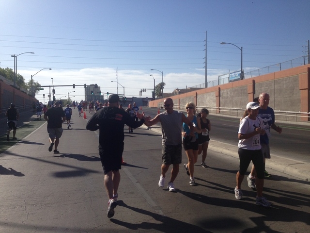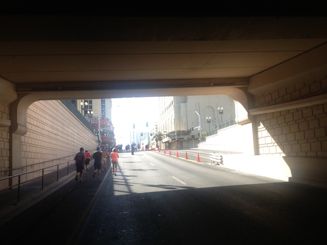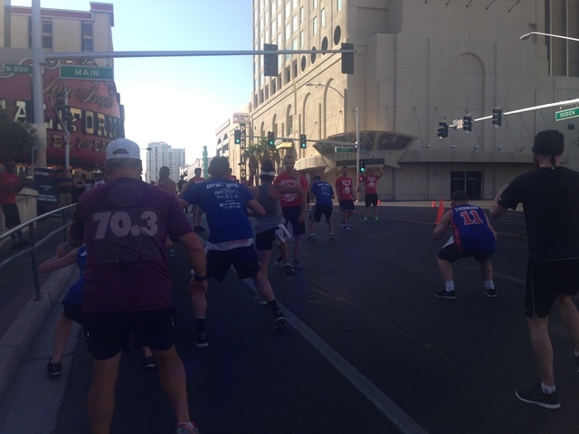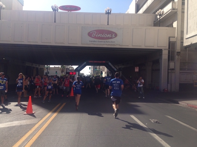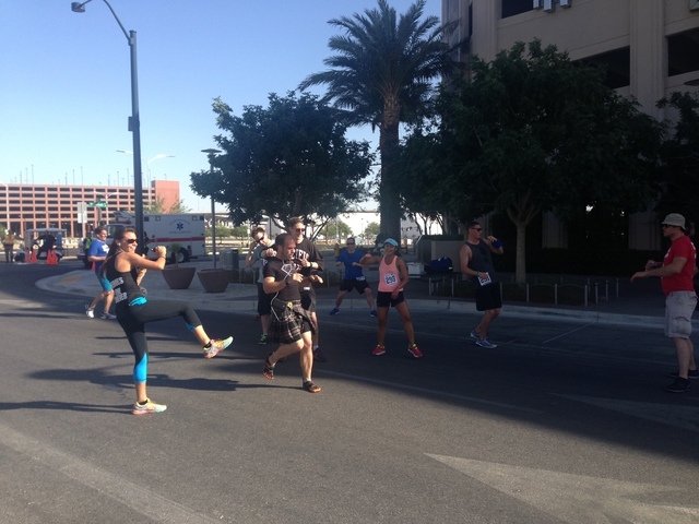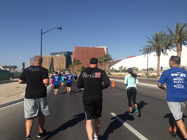 The 5K run staging area was in front of the Hogs & Heifers bar on 3rd Street in downtown. In true UFC form, coaches were instructing runners on kicks and other exercise moves at mile stations along the route.