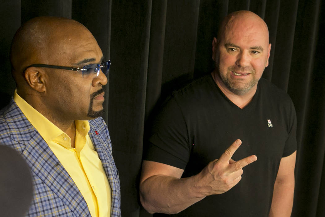 White was all smiles as he stood alongside Mayweather Promotions CEO Leonard Ellerbe on Wednesday night at UFC headquarters to announce that the historic boxing match will take place Aug. 26 at T-Mobile Arena.