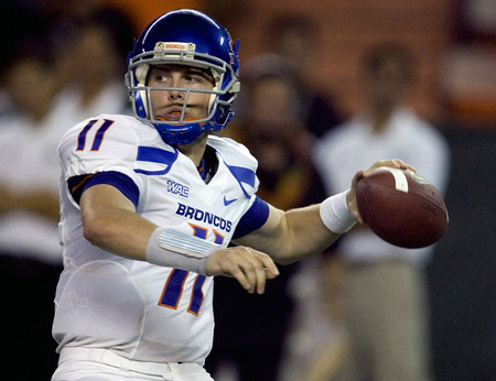 Back the Broncos, led by sophomore quarterback Kellen Moore, getting more than a touchdown. Moore has 39 touchdown passes to three interceptions this season.
