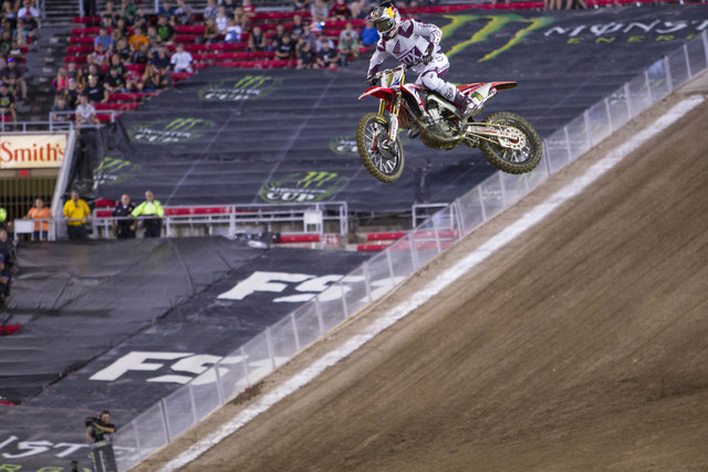 Ken Roczen had Sam Boyd Stadium thinking $1 million as the German rider was cruising through the AMA Monster Energy Cup main events Saturday night.