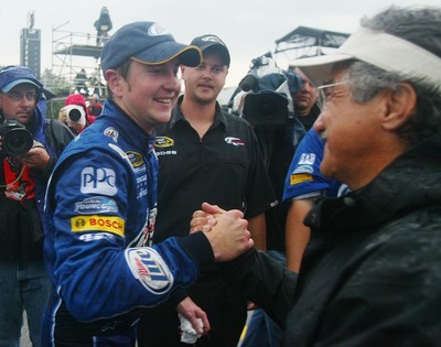 Within minutes after the race was official, the sky opened up and lightning began flashing around the speedway, emptying the stands in a hurry and forcing Busch to hold his victory celebration in the shelter of the garage area.