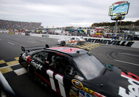 MARTINSVILLE, Va. (AP) – Denny Hamlin turned a dominant car into a winner at Martinsville Speedway, passing Jimmie Johnson with 138 laps to go Sunday and holding off the Chase leader on a series of late restarts.