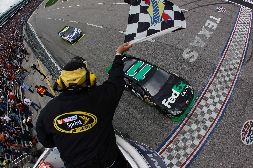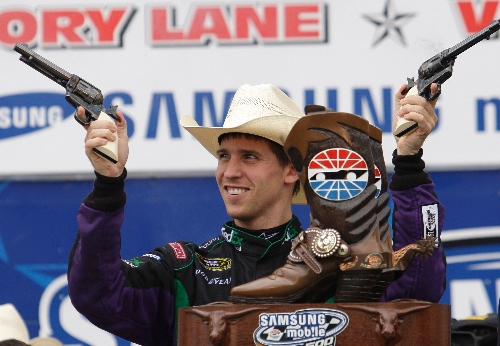Las Vegas natives Kyle Busch and Kurt Busch finished third and fourth; Kurt won at Texas in November. Kasey Kahne, Mark Martin, Kevin Harvick, Dale Earnhardt Jr., Martin Truex Jr. and Greg Biffle rounded out the top 10.