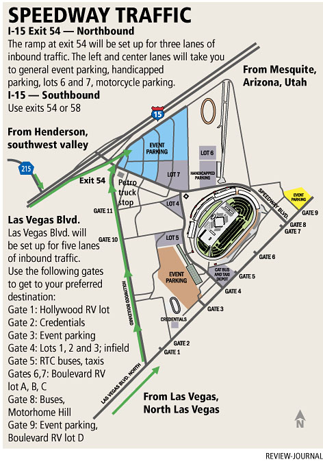 While most race fans probably will take Interstate 15 to the speedway, officials are encouraging folks from the western and northern parts of the valley to take the Las Vegas Beltway and fans from the east to consider using Las Vegas Boulevard North.