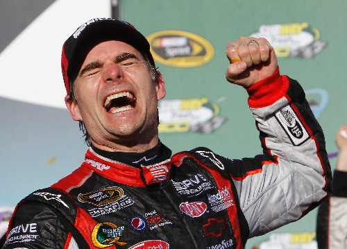 The fans in the grandstands savored the moment, nearly all of them rising as he crossed the line, and Gordon had a raucous celebration in the pits with his crew, owner and teammate Mark Martin.