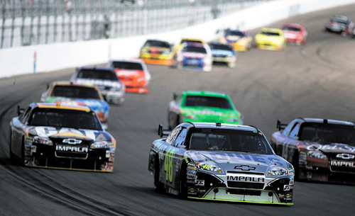 A late-race tire strategy by Knaus helped the No. 48 Hendrick Motorsports Chevrolet overcome teammate Jeff Gordon, who led 219 of the race's first 250 laps.