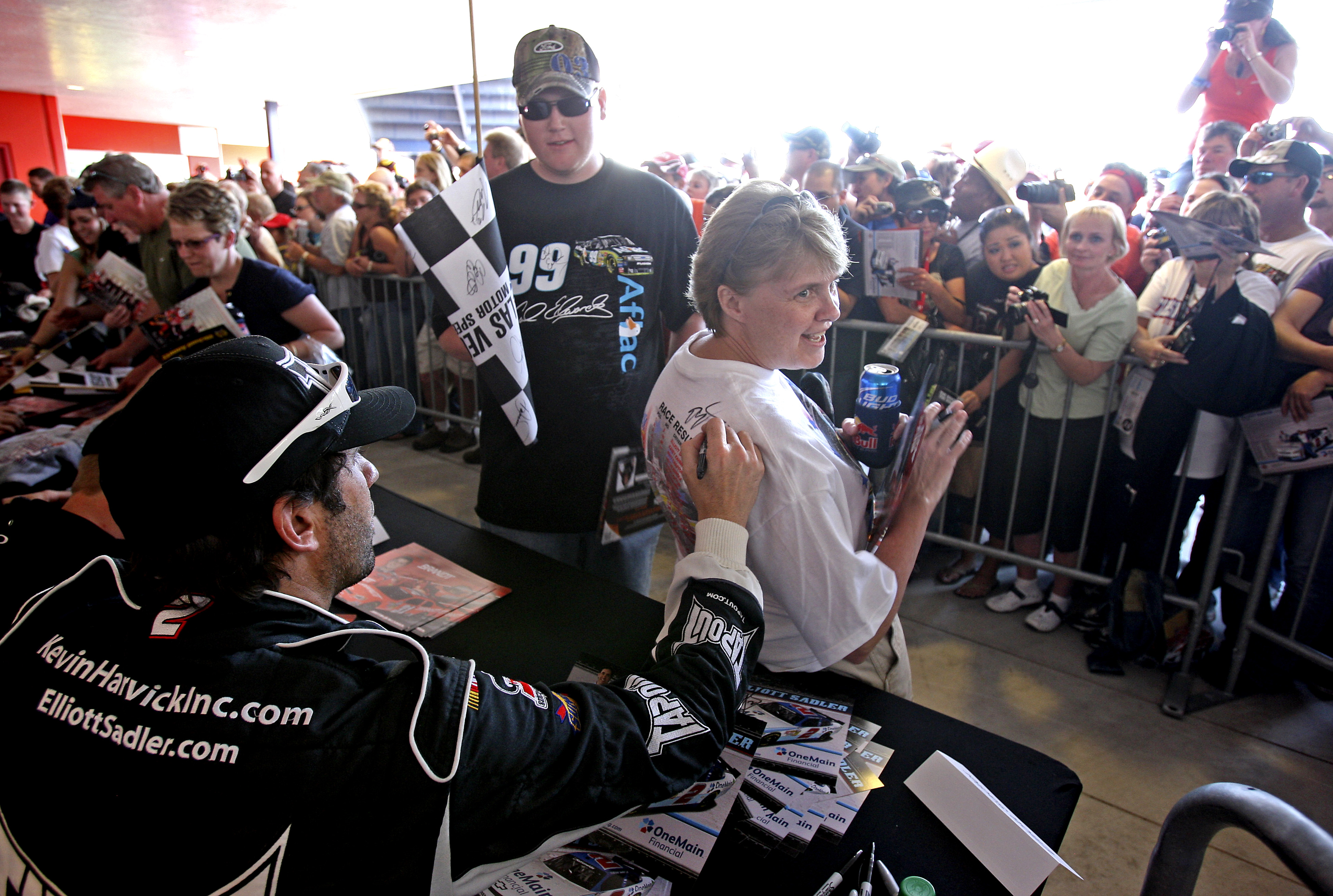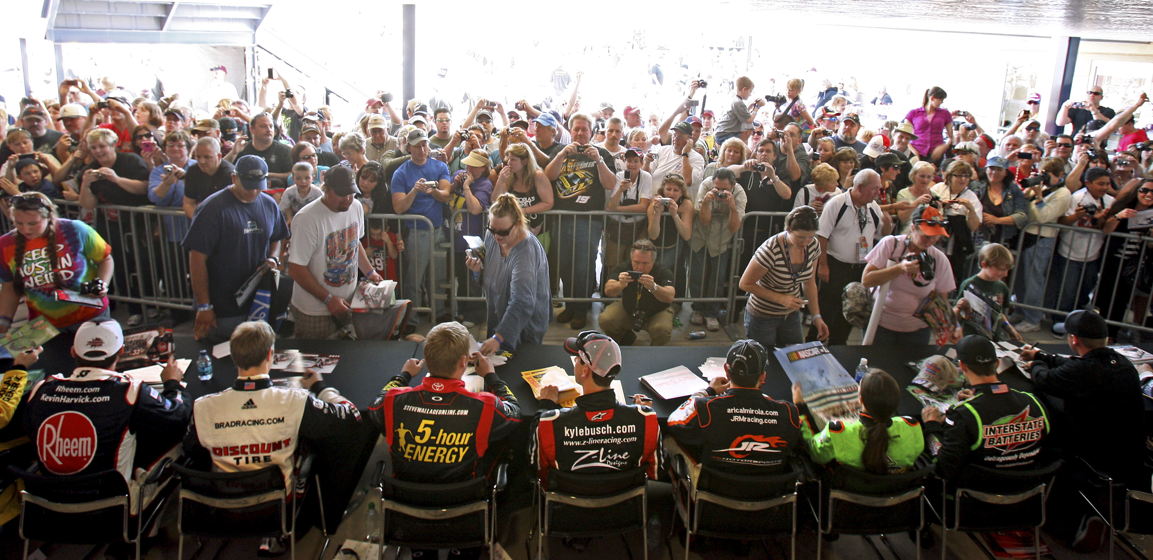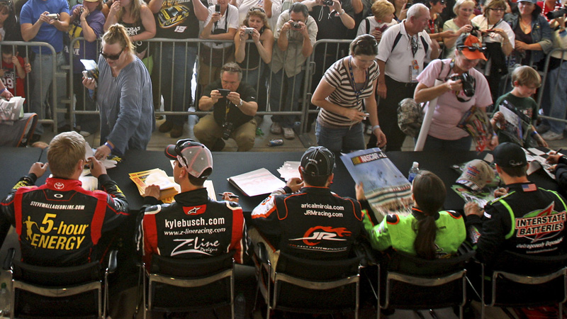 NASCAR fans crowded the Neon Garage to meet and get autographs from Sprint Cup drivers Kyle Busch, Danica Patrick, Elliott Sadler and Denny Hamlin on Thursday.