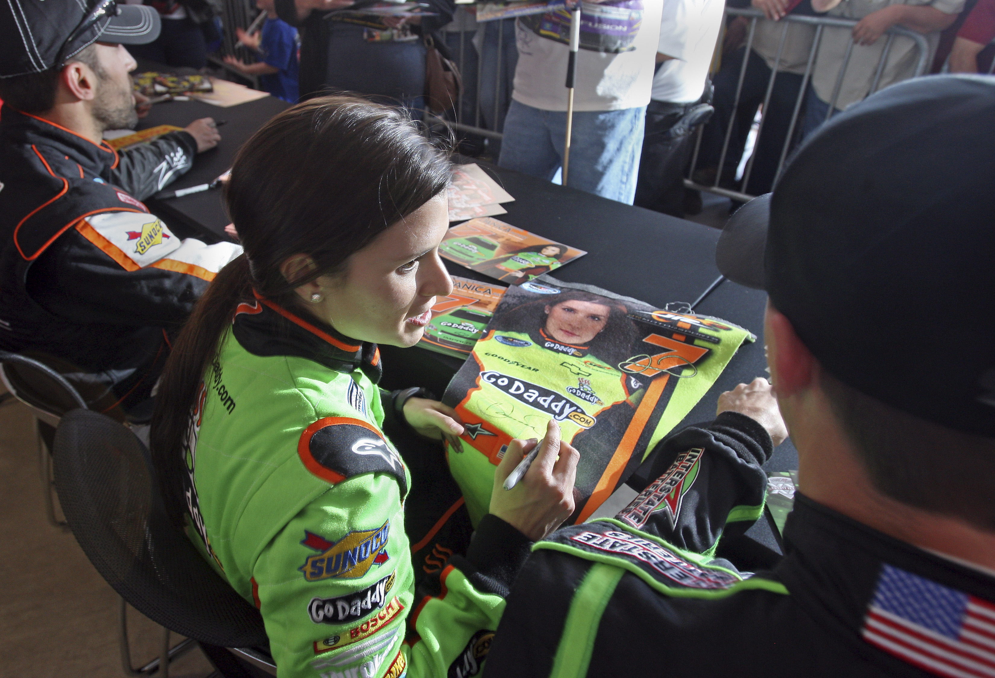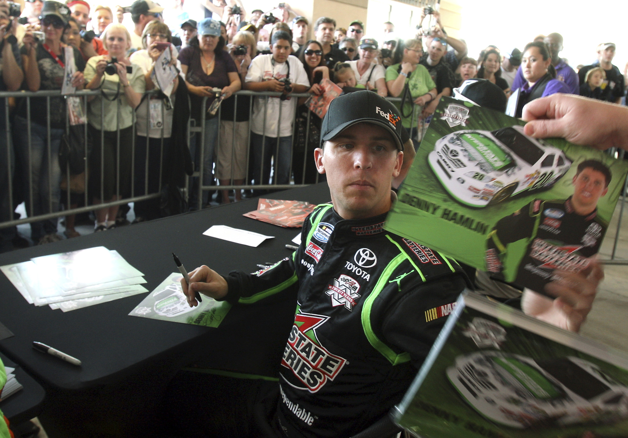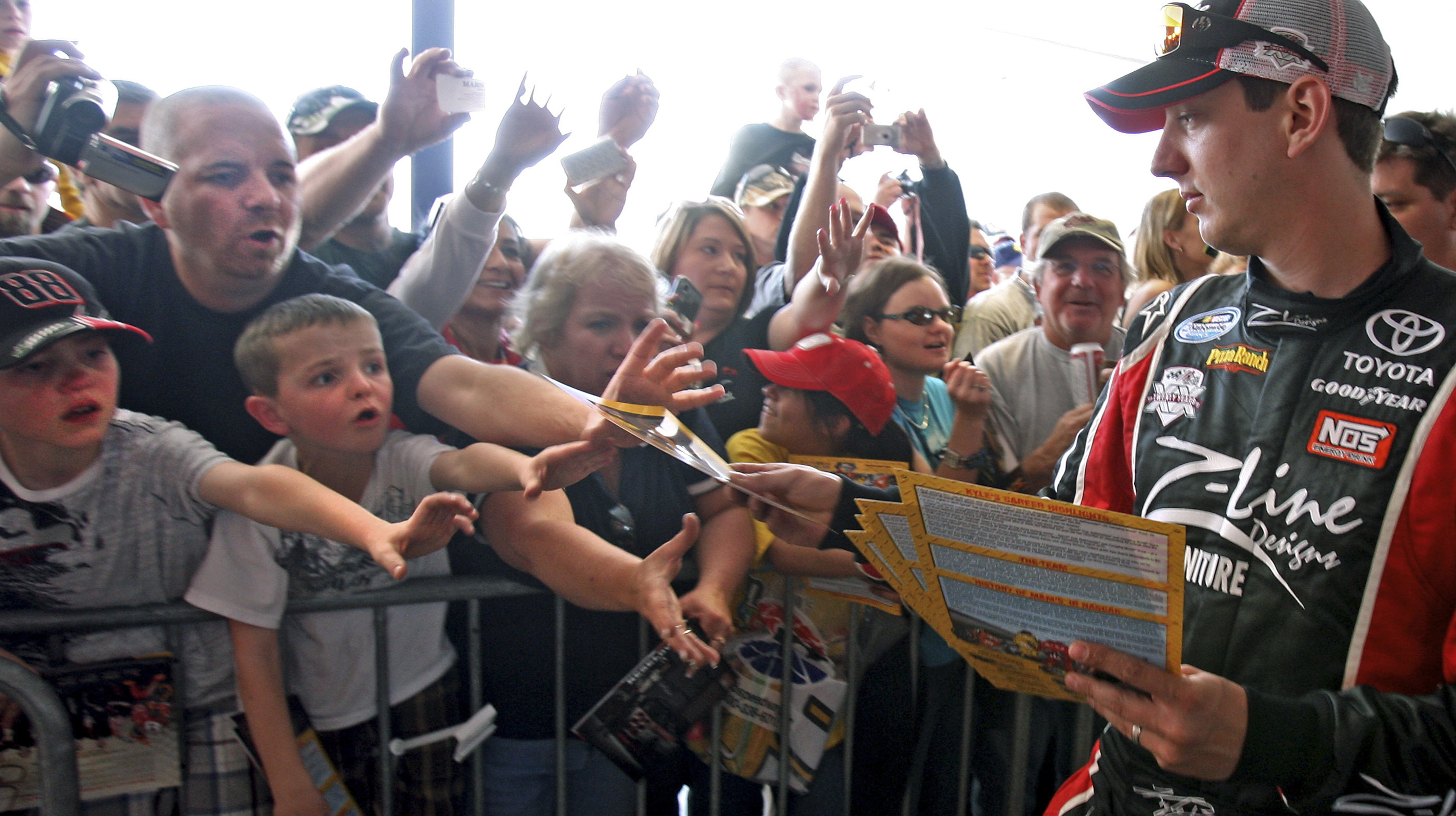 NASCAR fans crowded the Neon Garage to meet and get autographs from Sprint Cup drivers Kyle Busch, Danica Patrick, Elliott Sadler and Denny Hamlin on Thursday.