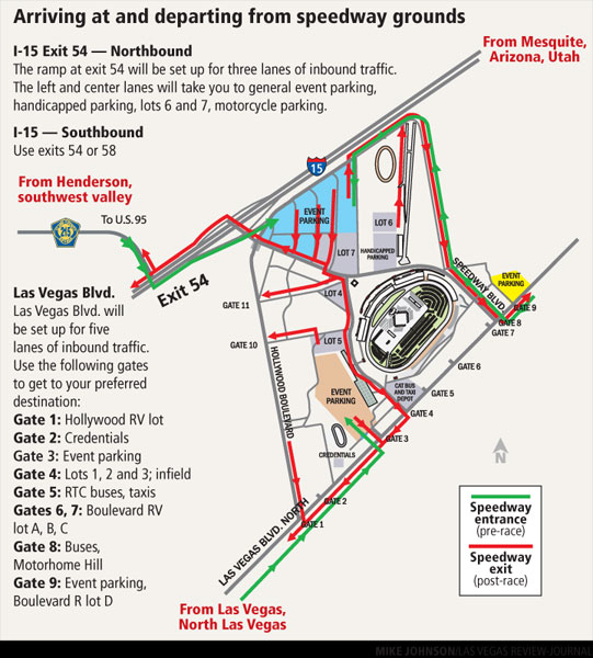 "We do expect it to be a better drive this year," said Nevada Highway Patrol trooper Chelita Rojas. Still, speedway officials encourage racing fans to ride mass transit to reduce traffic. They estimated that each busload of fans takes 30 to 40 cars off the road.