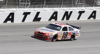 "The 18! The 18! The 18 is back at Atlanta," the Las Vegas native screamed on the radio after crossing the finish line ahead of teammate Tony Stewart. "Congratulations, (crew chief Steve) Addington, it’s your first one."