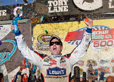 FORT WORTH, Texas — Jimmie Johnson’s drive to history took a hard hit against a wall, and Kyle Busch ran out of gas trying to complete an unprecedented NASCAR trifecta.