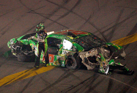 DAYTONA BEACH, Fla. — Kyle Busch braced himself for a four-lap “trophy dash” around Daytona International Speedway, intent on snatching a win from Tony Stewart.