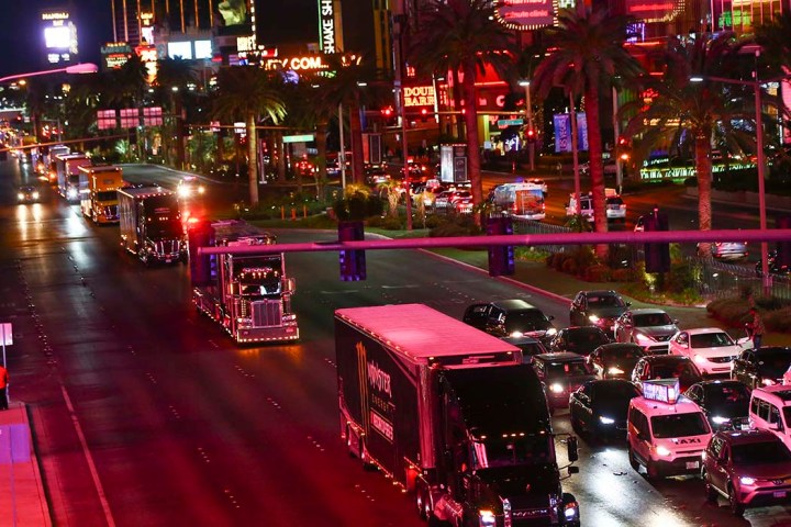 The NASCAR hauler parade returned to the Las Vegas Strip on Thursday night.