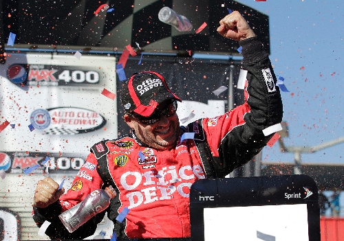 Tony Stewart pulled away from Johnson on a late restart Sunday to win at Auto Club Speedway for the first time in 19 tries, but it was the four-time defending Sprint Cup champion who walked away with a bigger points lead.