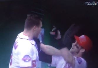 Harper flied out to left field to begin the last of the eighth and Papelbon, who had come on to pitch in the top of the eighth, hollered at Harper even before he got into the dugout.