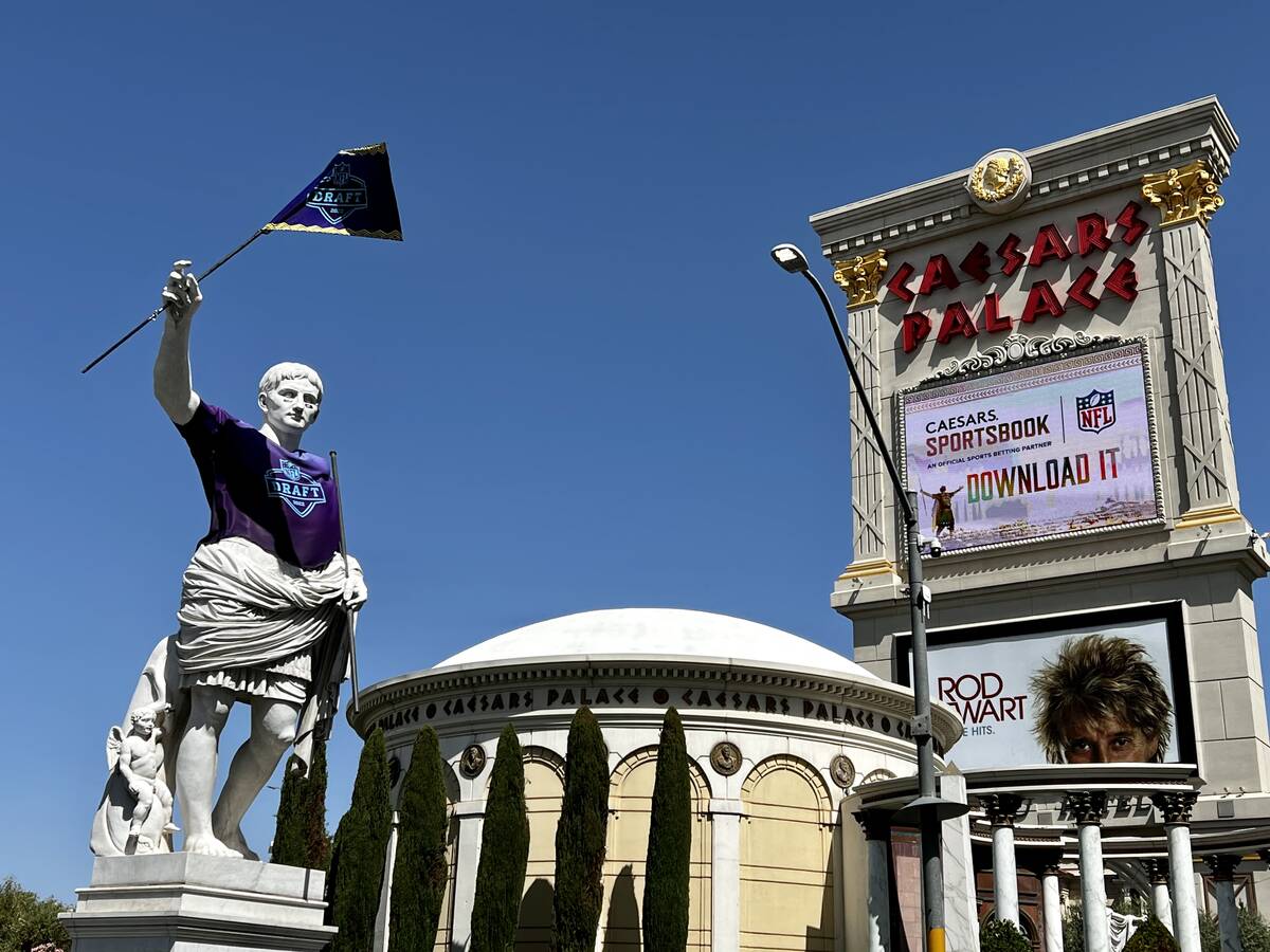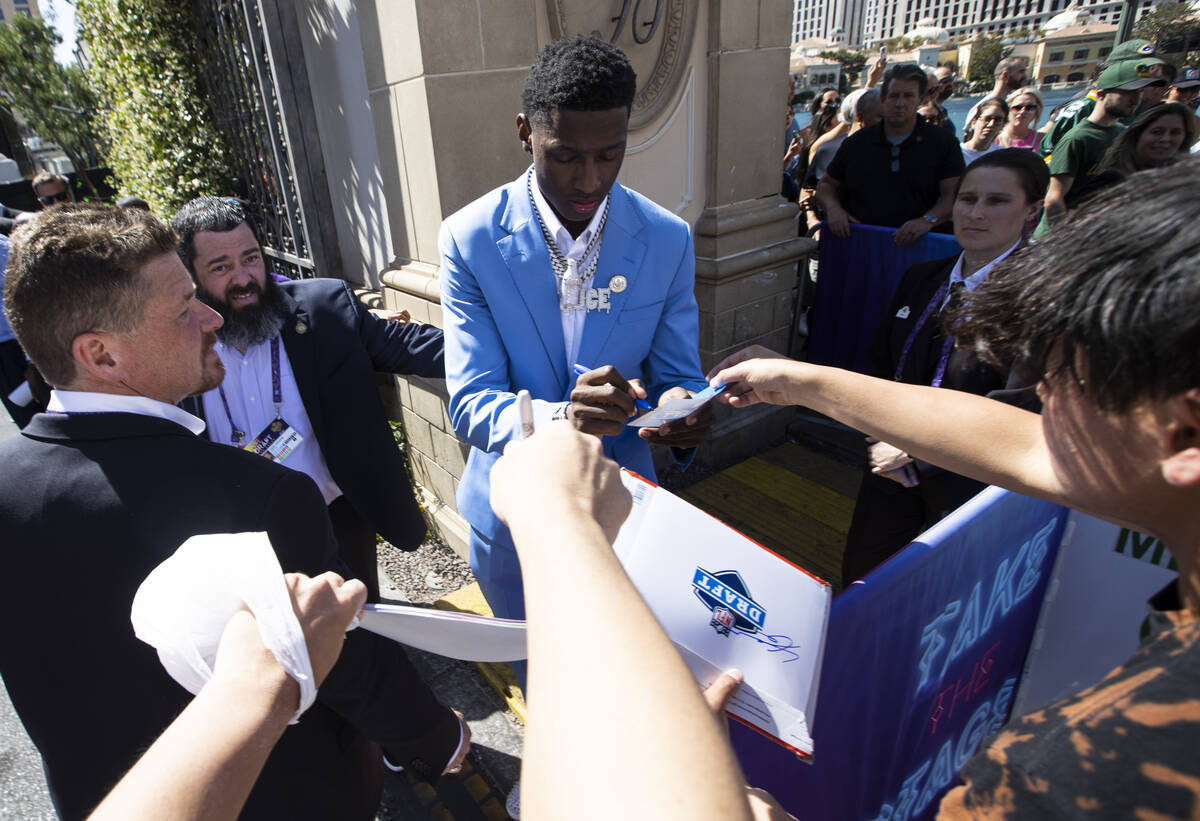 Fans of all 32 NFL clubs were strewn about throughout the area, ranging from the draft’s red carpet stage set up over the Fountains of Bellagio to the draft theater and fan experience located behind the Linq.
